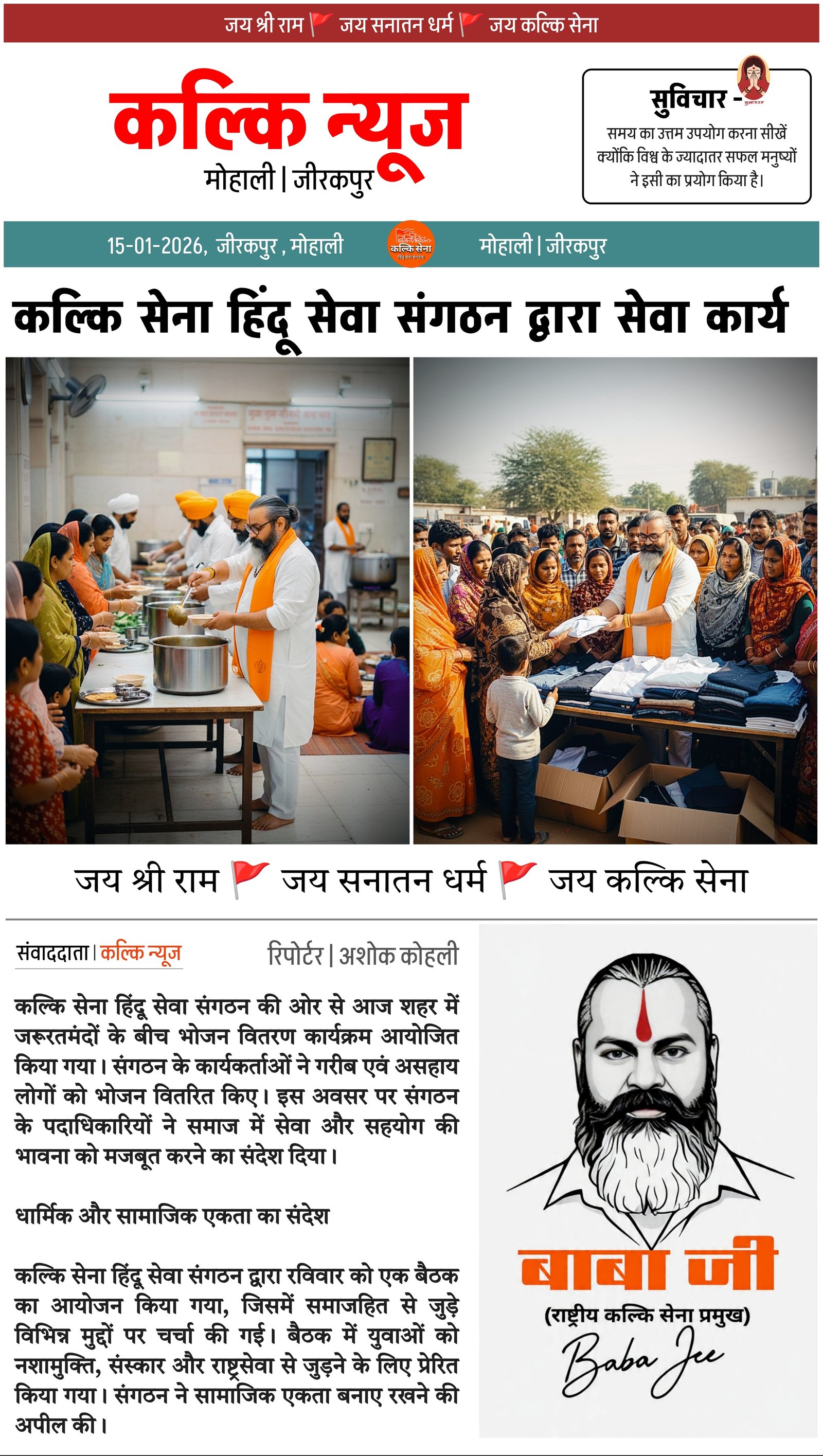 राष्ट्रीय कल्कि हिंदू सेवा संगठन सेवा कार्य